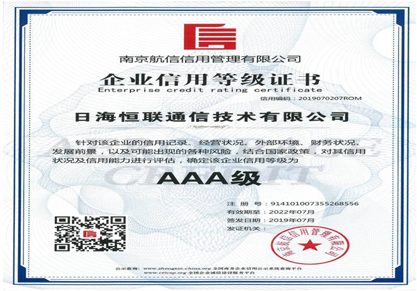 企業(yè)信用等級AAA級信用企業(yè)